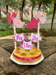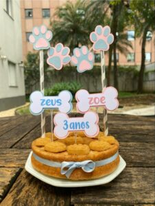 Nossos bolos podem vir acompanhados por um kit festa personalizado, feito especialmente para seu pet